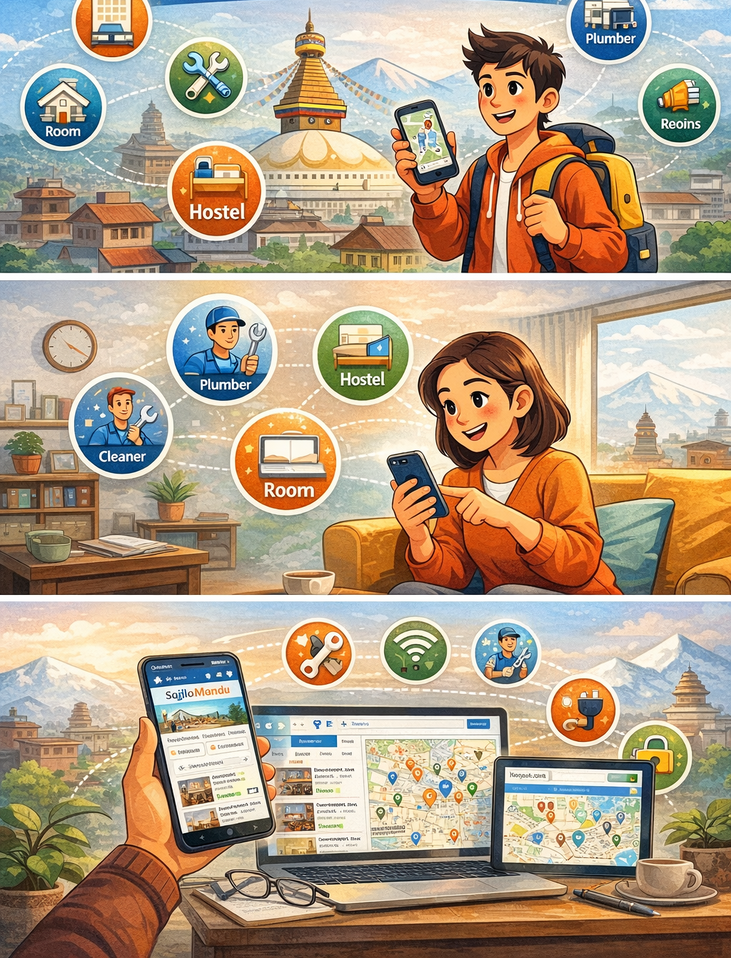 Over the past decade, technology has transformed the way people live, work, and communicate around the world. Nepal is no exception. With the rapid growth of smartphones, internet access, and digital platforms, the way people find and use local services has started to change significantly. In the past, people relied heavily on word of mouth, local contacts, or walking around neighborhoods to find services such as rooms, hostels, plumbers, electricians, or other household services. While this traditional method sometimes worked, it was often slow, unreliable, and inefficient.